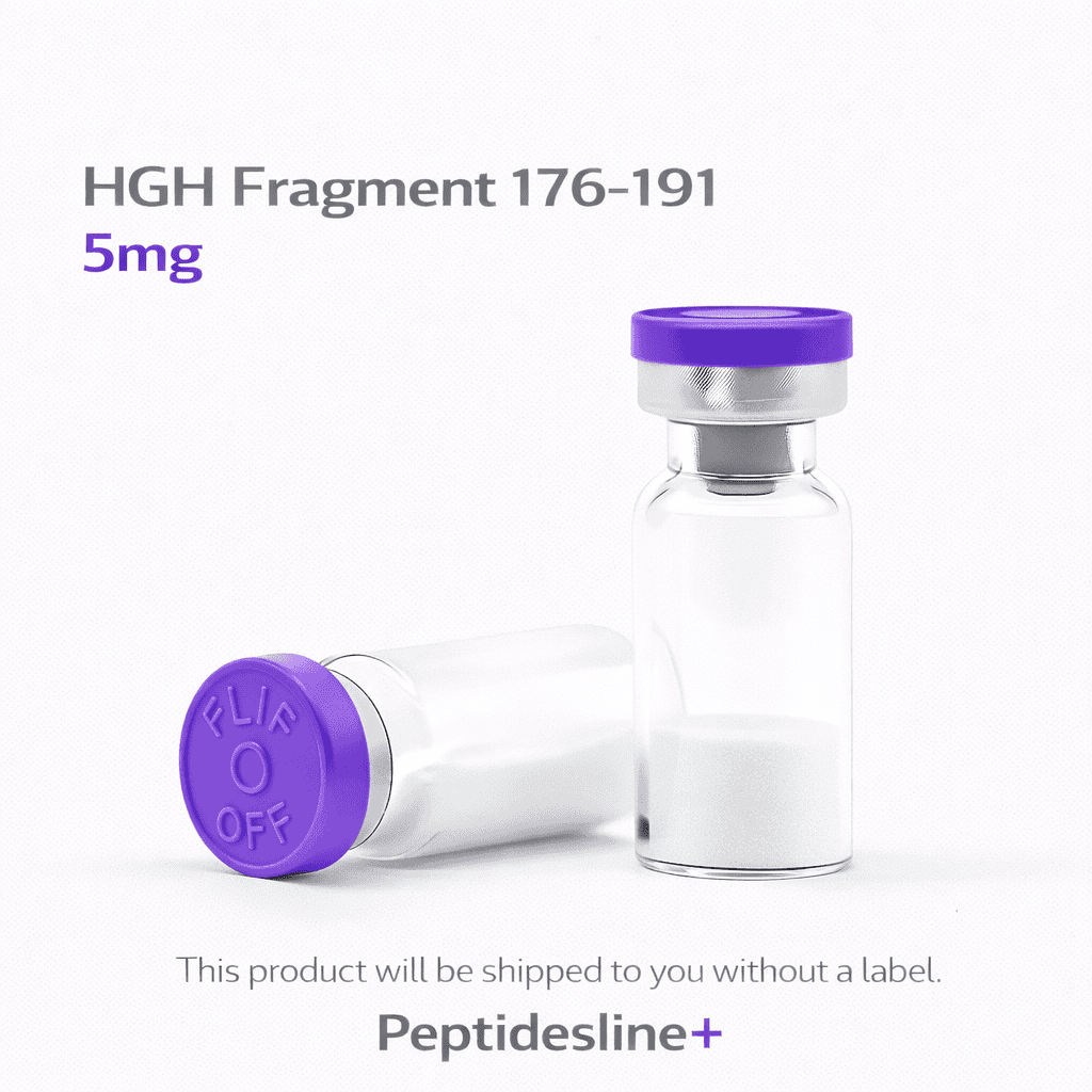 The 5 mg No Label HGH Fragment 176-191 is a modified form of amino acids 176-191 of the human growth hormone polypeptide. Unlike full-length HGH, this fragment only isolates the fat-burning (lipolytic) properties. In the peptide market, it is used for its ability to break down fat without the side effects of decreased insulin sensitivity or unwanted cellular growth.