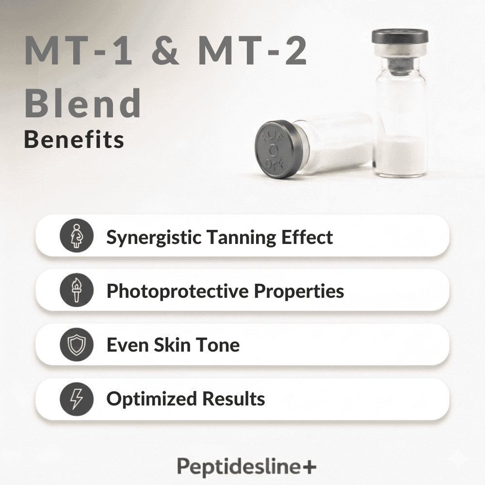 Because this blend contains Melanotan 2 (MT2), it is potent. Even though the Melanotan 1 (MT1) content acts as a buffer to reduce side effects, it is crucial to calculate the dosage based on the MT2 component to avoid nausea or flushing.