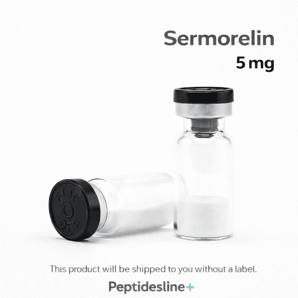 Sermorelin is a powerful growth hormone-releasing hormone (GHRH) analogue consisting of 29 amino acids. It is a functional fragment of the naturally occurring GHRH that is produced by the hypothalamus. This No Label 5 mg formulation is a research-grade peptide designed to stimulate the pituitary gland to increase the natural secretion of endogenous growth hormone (GH).